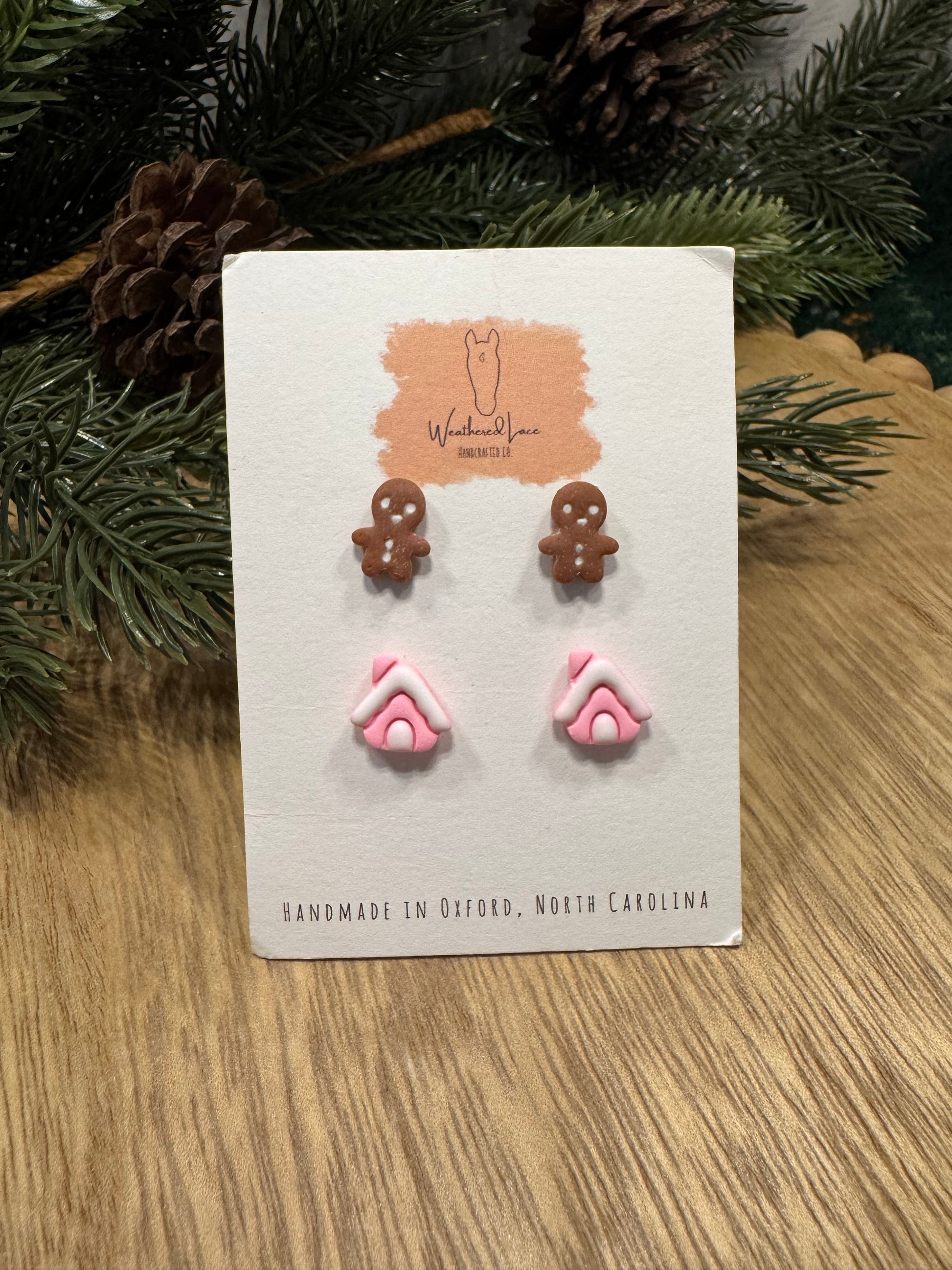 Gingerbread and house sets on hypoallergenic stainless steel and gold plated stainless steel.